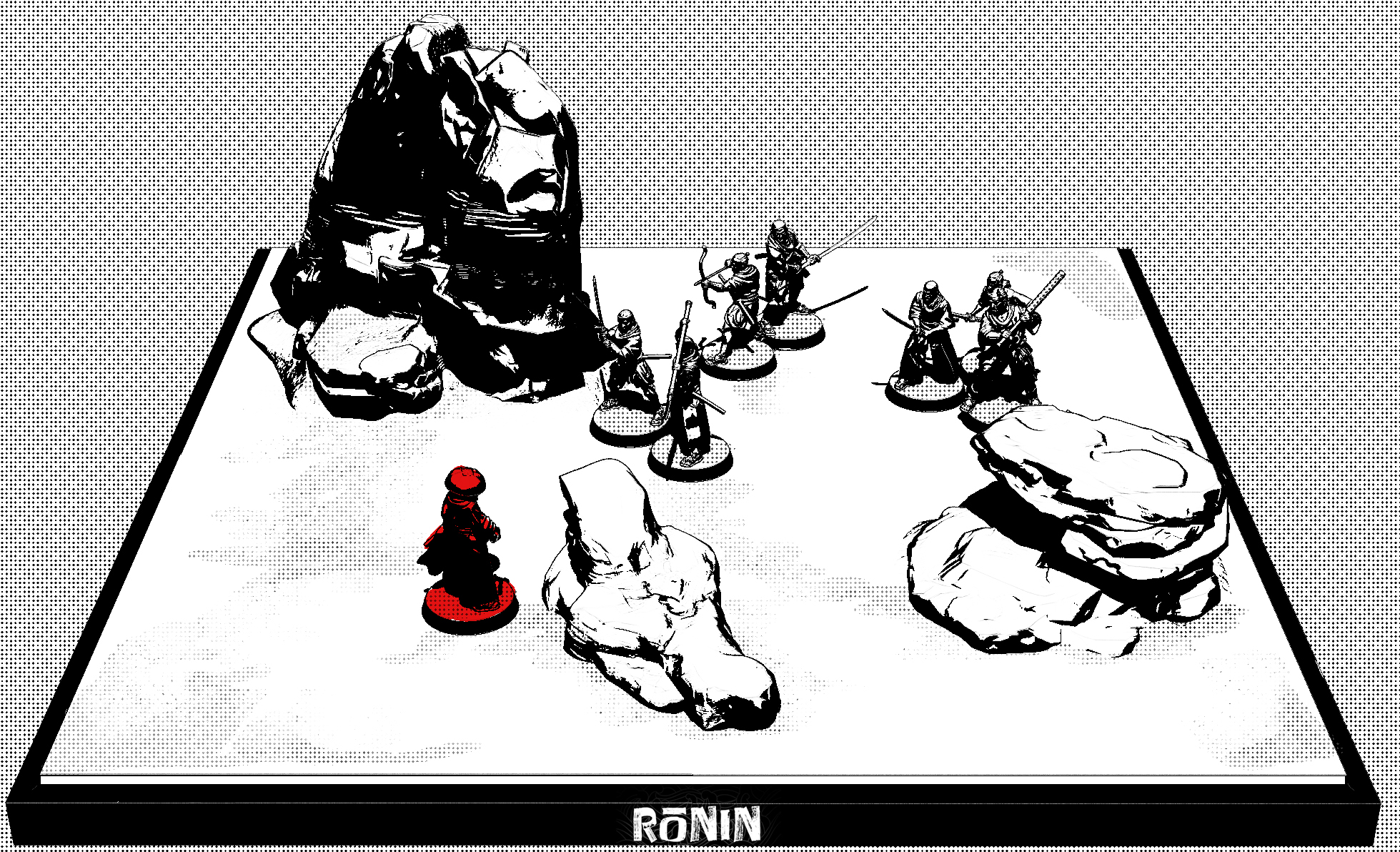 Blade of the Nomad: RONIN is a small tabletop miniatures game in which two players clash blades on a 12" x 12" battlefield. One player, controlling the single Ronin miniature must survive and defeat the onslaught of a treacherous band of seven Outlaws, controlled by the other player, who seek revenge against the solitary Ronin.